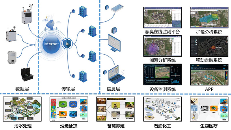 通過(guò)安裝惡臭在線(xiàn)監(jiān)測(cè)系統(tǒng),可以實(shí)時(shí)在線(xiàn)監(jiān)測(cè)環(huán)境空氣,掌握污染物特征,建立預(yù)警管理系統(tǒng),追溯污染排放源,制定減排方案。系統(tǒng)可廣泛應(yīng)用于化工園區(qū)、垃圾填埋場(chǎng)、污水處理廠(chǎng)、石油煉化、食品生產(chǎn)廠(chǎng)家、生物醫(yī)藥生產(chǎn)廠(chǎng)家、畜牧養(yǎng)殖廠(chǎng)、醫(yī)院等場(chǎng)合。